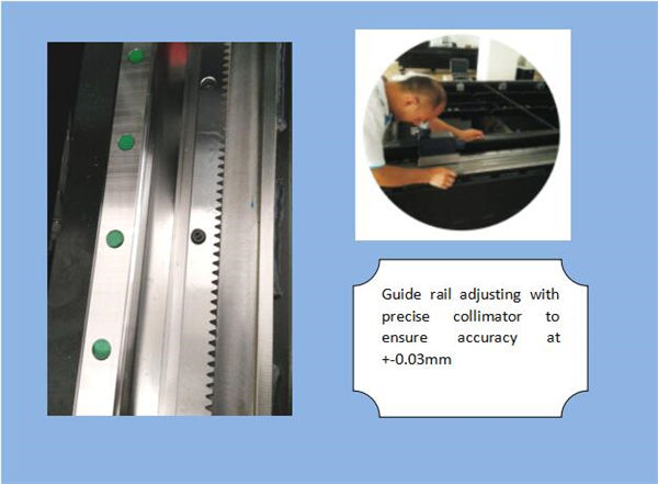| नाव:प्रेसिजन रेषीय मार्गदर्शक उच्च प्रक्रियेची गती आणि अचूकता सुनिश्चित करण्यासाठी प्रगत कटिंग सिस्टम, लेसर पॉवर आणि सर्वो आंदोलन, एकमेकांना उत्तम प्रकारे सूट करते, आयातित उच्च अचूकता गीअर आणि रॅक ड्राइव्ह सिस्टम, एक्सचेंज करण्यायोग्य डबल वर्क टेबल .. |