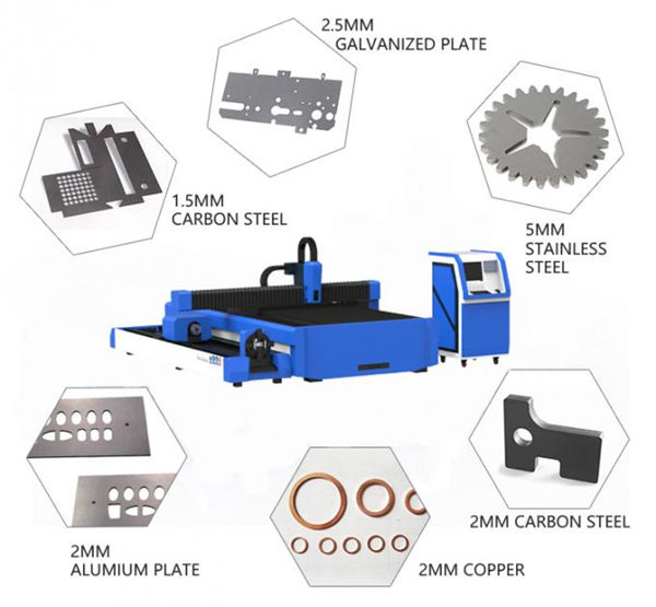 * 0.5-6 मिमी कार्बन स्टील, 0.5-5 मिमी स्टेनलेस स्टील, गॅल्वनाइज्ड स्टील, इलेक्ट्रोलाइटिक झिंक-लेपित स्टील शीट, सिलिकॉन स्टील आणि पातळ धातूच्या इतर प्रकारच्या पत्रके कापण्यासाठी विशेषतः वापरले जाते. 1000 डब्ल्यू 3 मिमी एल्युमिनियम आणि 2 मिमी तांबे कापू शकतो.